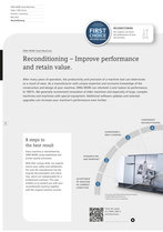 dmg mori used machines - reconditioning dmg mori used machines sales / cnc scout finance / insurance buy-back reconditioning dmg mori used machines first choice second hand reconditioning our experts can boost the performance of your old machine. dmg mori used machines reconditioning – improve performance and retain value. after many years of operation, the productivity and precision of a machine tool can deteriorate as a result of wear. as a manufacturer with unique expertise and exclusive knowledge of the construction and design of your machine, dmg mori can refurbish it and restore its performance to 100 %. we generally recommend renovation of older machines and especially of large, complex machines and machines with special equipment. additional software updates and selected upgrades can increase your machine’s performance even further. 10 8 steps to the best result every machine is refurbished by dmg mori using established and proven quality processes. with their unique skills, our experts ensure your safety and satisfaction. for only the manufacturer has the original documentation and check- lists, which are indispensable for a professional overhaul. this also enables us to present you with your reconditioned machine together with the original machine records. component reconditioning 4 disassembly and cleaning 3 dismantling and removal* 2 acceptance of machine in current condition 1 from old to new! reconditioning by the experts at dmg mori used machines. * optional service by arrangement view the video of a dmc 200 u overhaul here: