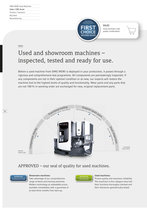 sales - used and showroom machines dmg mori used machines sales / cnc scout finance / insurance buy-back reconditioning dmg mori used machines first choice second hand sales used machines with quality certification! sales used and showroom machines – inspected, tested and ready for use. before a used machine from dmg mori is deployed in your production, it passes through a rigorous and comprehensive test programme. all components are painstakingly inspected. if any components are not in their optimal condition or as new, our experts will restore the machine tool to the highest levels of quality and functionality. wear parts and any parts that are not 100 % in working order are exchanged for new, original replacement parts. 04 receipt inspection a l t e / k c e h n y c r c ti o t e m n ecks f u g tests / g e o h a e l nin nt c c e n o p m o c t s i n g original spare parts a d j u s t m e n t replacement of worn / defective p a r t s 1 0 f i n 0 - h a o u l i r e n n s d p u r e a c n t i o n c e t e s t customer acceptance approved – our seal of quality for used machines. approved showroom machine showroom machines: take advantage of our comprehensive range of demo and training machines. modern technology at unbeatable prices, available immediately with a guarantee of at least three months from start-up. approved used machine used machines: proven quality and maximum reliability. the machines in this category have had their functions thoroughly checked and their tolerances geometrically tested.