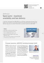 dmg mori spare parts order spare parts with free shipping! go straight to the dmg mori online shop*: shop.dmgmori.com dmg mori spare parts spare parts – maximum availability and fast delivery. in selecting a used machine from dmg mori, you are opting for cutting-edge technology and top quality on your shop floor. you can expect the same of our spare parts service. we can supply you with every spare part up to at least 10 years after you purchase a machine from dmg mori. highlights + global logistics network for worldwide markets + replacement parts availability rate > 95 % + more than 280,000 different items in stock + many spare parts also available for older machines dating back to 1970 + order via the 24 / 7 service hotline or from the online shop * the dmg mori online shop is available in all eu countries! online shop free shipping 09 customer testimony: anfotec antriebstechnologie gmbh anfotec antriebstechnologie gmbh was founded in 2000 and has become established as a high-quality manufac- turer of injection moulding machines including drive technology in the fields of mechanical engineering, measure- ment and semiconductor processing. anfotec meets its high production requirements with cnc technology from dmg mori. four of the nine models – including a dmu 200 p and a dmf 260 – originated from the port- folio of dmg mori used machines. christian hast, managing director of anfotec, explains: ‘we are aware of the longevity of the machines. this is why even used models are an attrac- tive way to expand production capacity. he also sees the rapid delivery as a major advantage: ‘most of the prod- ucts and services of dmg mori used machines are suitable solutions that are in stock which, unlike new machine orders, can be installed within the shortest possible time.’ managing director christian hast impressed by the high quality in particular. anfotec antriebstechnologie(cid:12)gmbh anfotec antriebstechnologie gmbh landwehr 17, d-59964 medebach www.anfotec.de