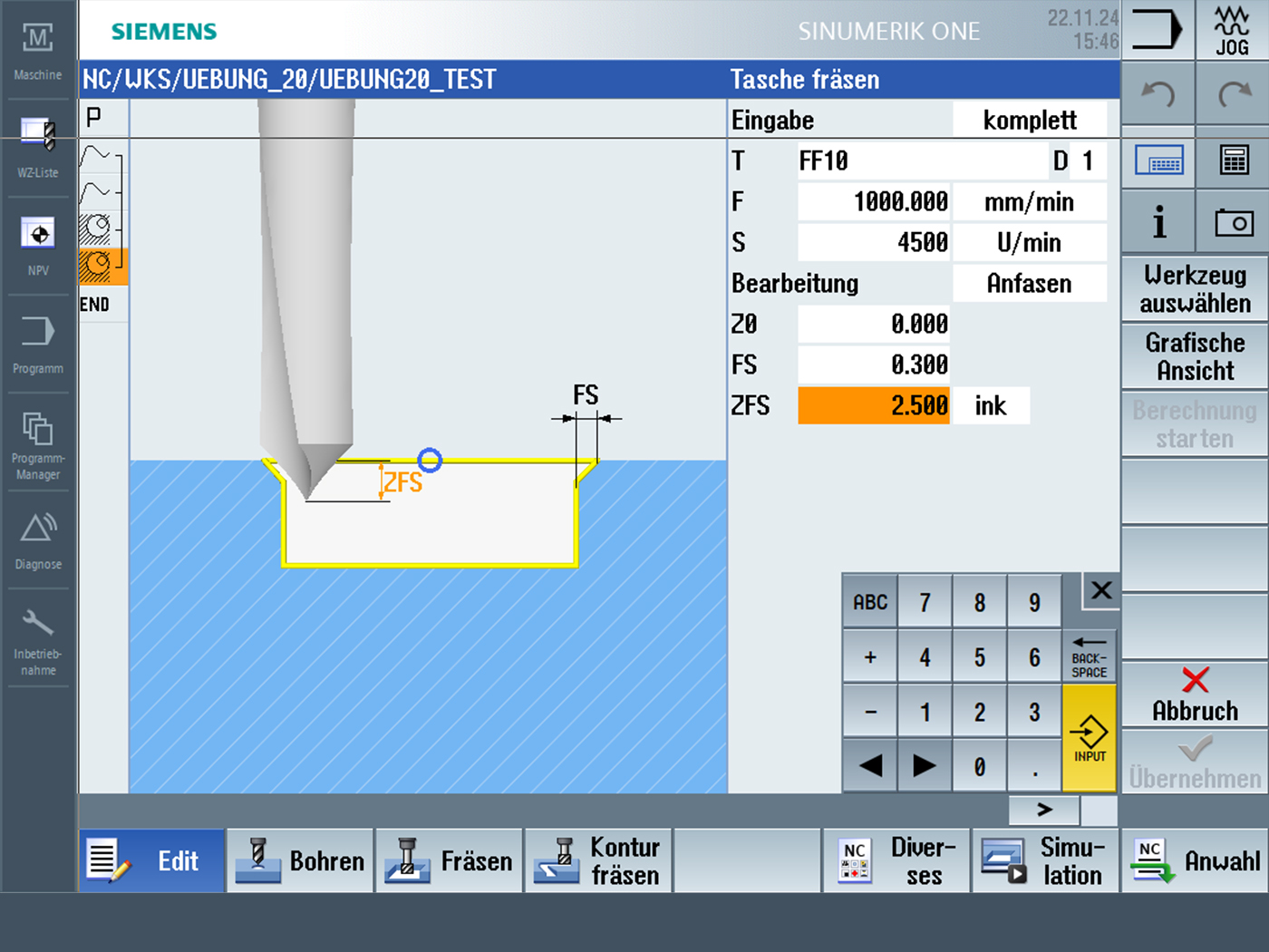 For shop floor programming, NC programs can be created, tested, and simulated just like on the real machine. Generally, the following functions and technologies are supported: Siemens Shopmill, Shopturn, turning-milling and milling-turning machines, 2D, 3D, 3+2, 5-axis simultaneous, and multi-channel structure programming. The project created, including program, tool, and zero point information, can be transferred to the machine via network or data carrier.